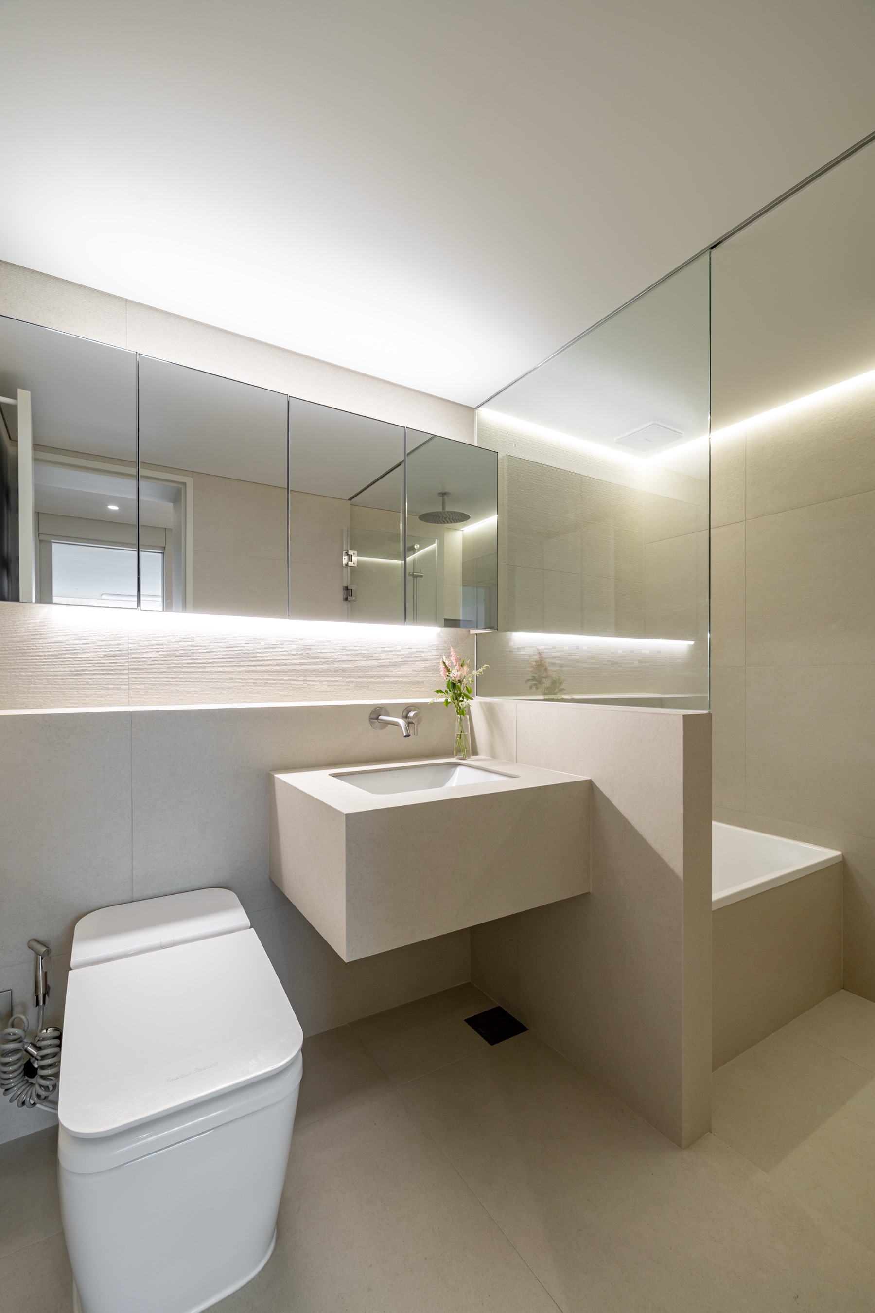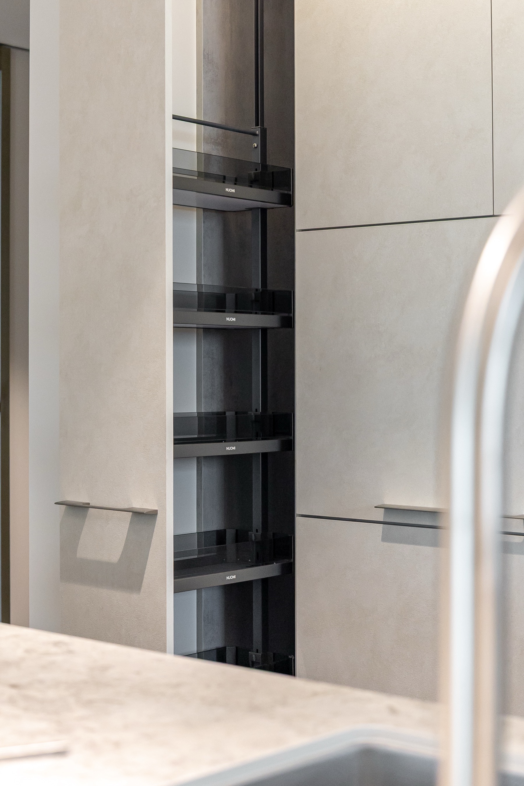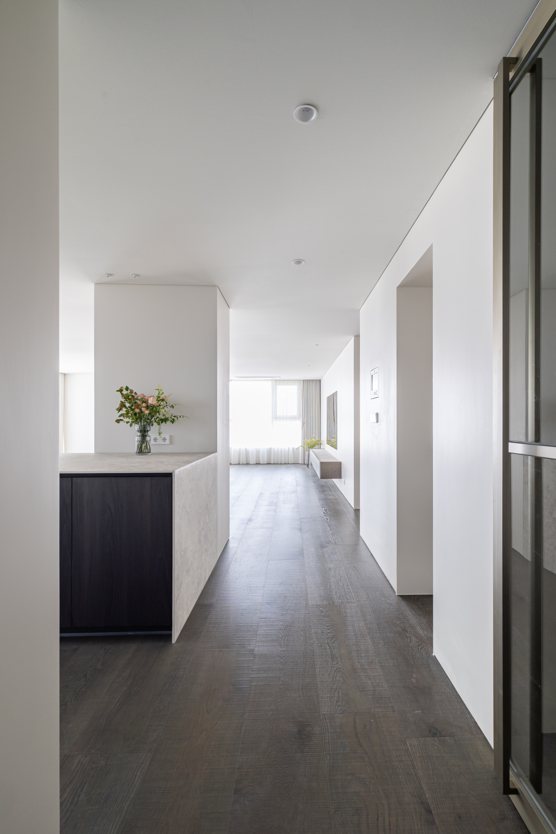 주방과 거실 사이 구조 기둥으로 인해 답답했던 공간을 확장형 구조로 풀어내고, 깨끗하면서 차분한 분위기의 디자인으로 완성했습니다.